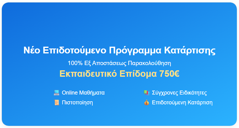 Αναμένεται σύντομα η έναρξη του νέου επιδοτούμενου προγράμματος εξ αποστάσεως κατάρτισης και πιστοποίησης σε σύγχρονες ειδικότητες.